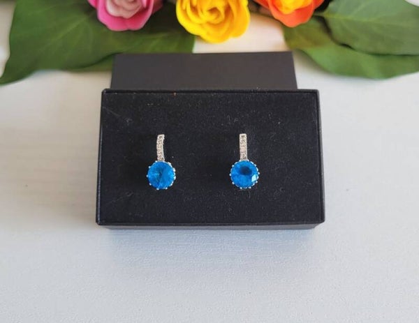 Dieser edle Ohrhänger in Silber rhodiert begeistert mit einem großen, runden Blauen Zirkonia-Stein von 10 mm Durchmesser, der in einer kunstvoll gestalteten Korbfassung gehalten wird. Die Rückseite der Fassung ist glatt poliert und bietet ein angenehmes Tragegefühl.