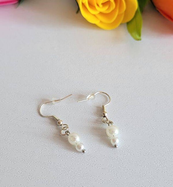 Diese zarten, handgefertigten Ohrringe bestehen aus zwei aufeinander gereihten Acrylperlen in edlem Altweiß – 4 mm und 6 mm im Durchmesser. Durch ihre schlichte Eleganz passen sie perfekt zu vielen Outfits und sind ideal für alle, die leichten Schmuck mit klassischem Look bevorzugen.