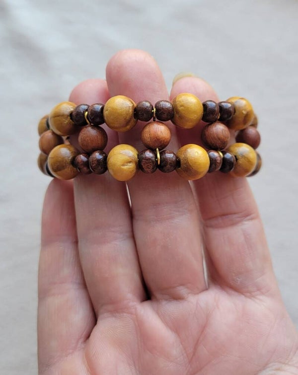 Handgefertigter Holzperlen Armreif Damen „Sophie“ – modern & kunstvoll
