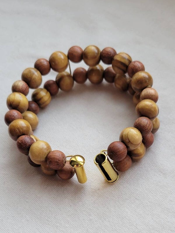 Auf robustem Edelstahldraht aufgefädelt und mit einem hochwertigen Magnetverschluss aus Edelstahl versehen, bietet dieser handgefertigte Holz Armreif angenehmen Tragekomfort und sicheren Halt im Alltag.