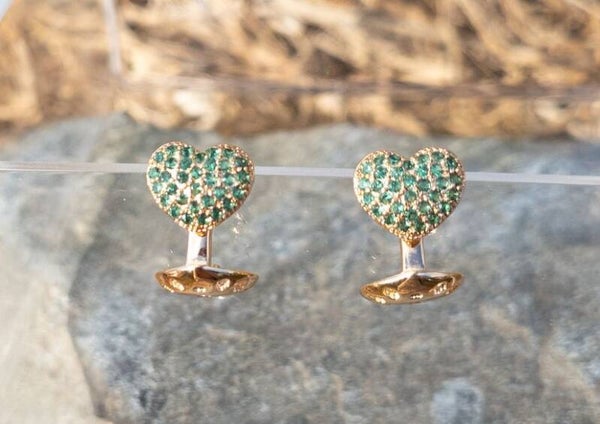 Damen Ohrstecker 18K vergoldet Herz mit grünen Zirkonia „Elara“ – elegant & feminin